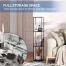 Floor lamp is composed of an additional 4 tiers of shelves to form three storage spaces 10.2 inches long and 16.5 inches high, which loads 50 pounds max.